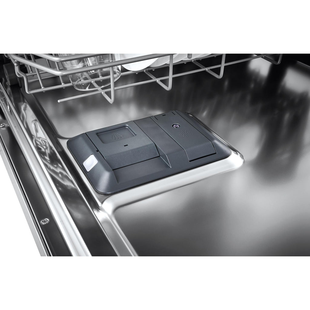 A unique washing system that uses alternating wash arms, for a quieter and more efficient operation.