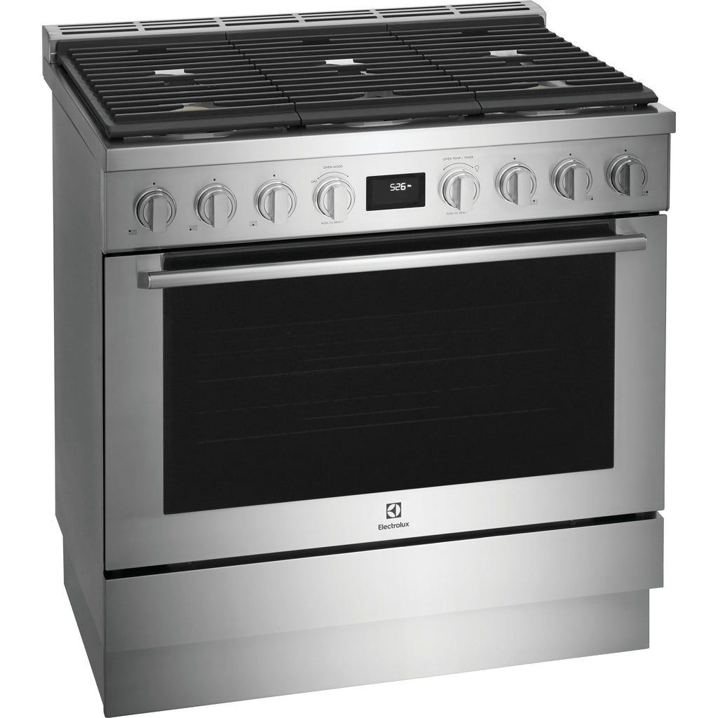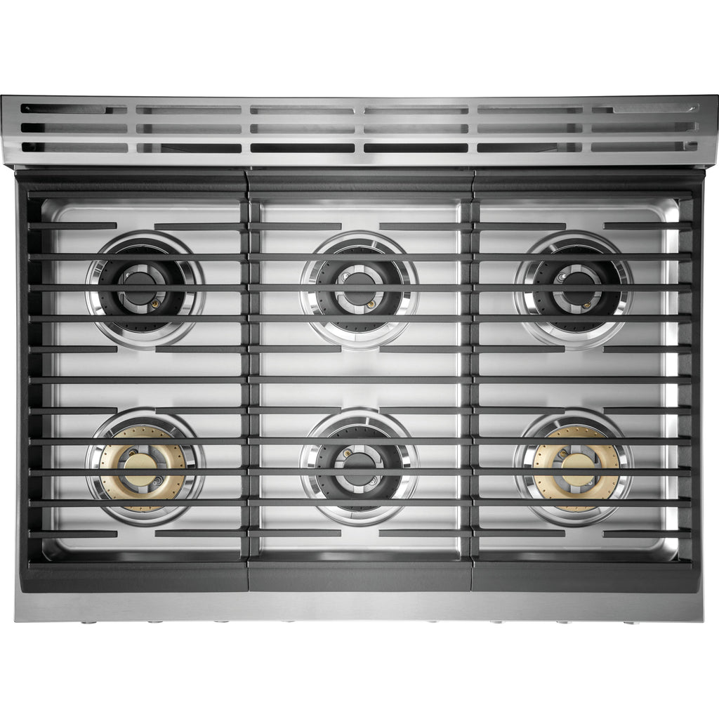 Full-framed linear grates, sturdy knobs, premium brass burner accents and the Electrolux signature pinstriped glass lend to the sleek design that make this range a focal point of your kitchen.