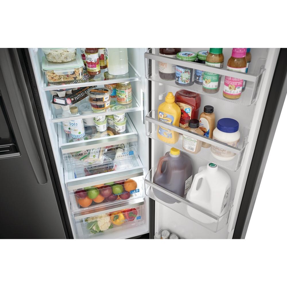 Find a place for everything with our flexible organization system, including three removable glass shelves, adjustable gallon door bin, and a slim design ice maker that holds 9 pounds of ice without taking up valuable shelf space.
