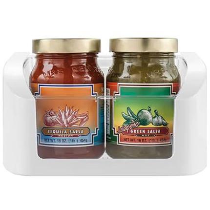This small bin can slide along any Custom-Flex Door railing.