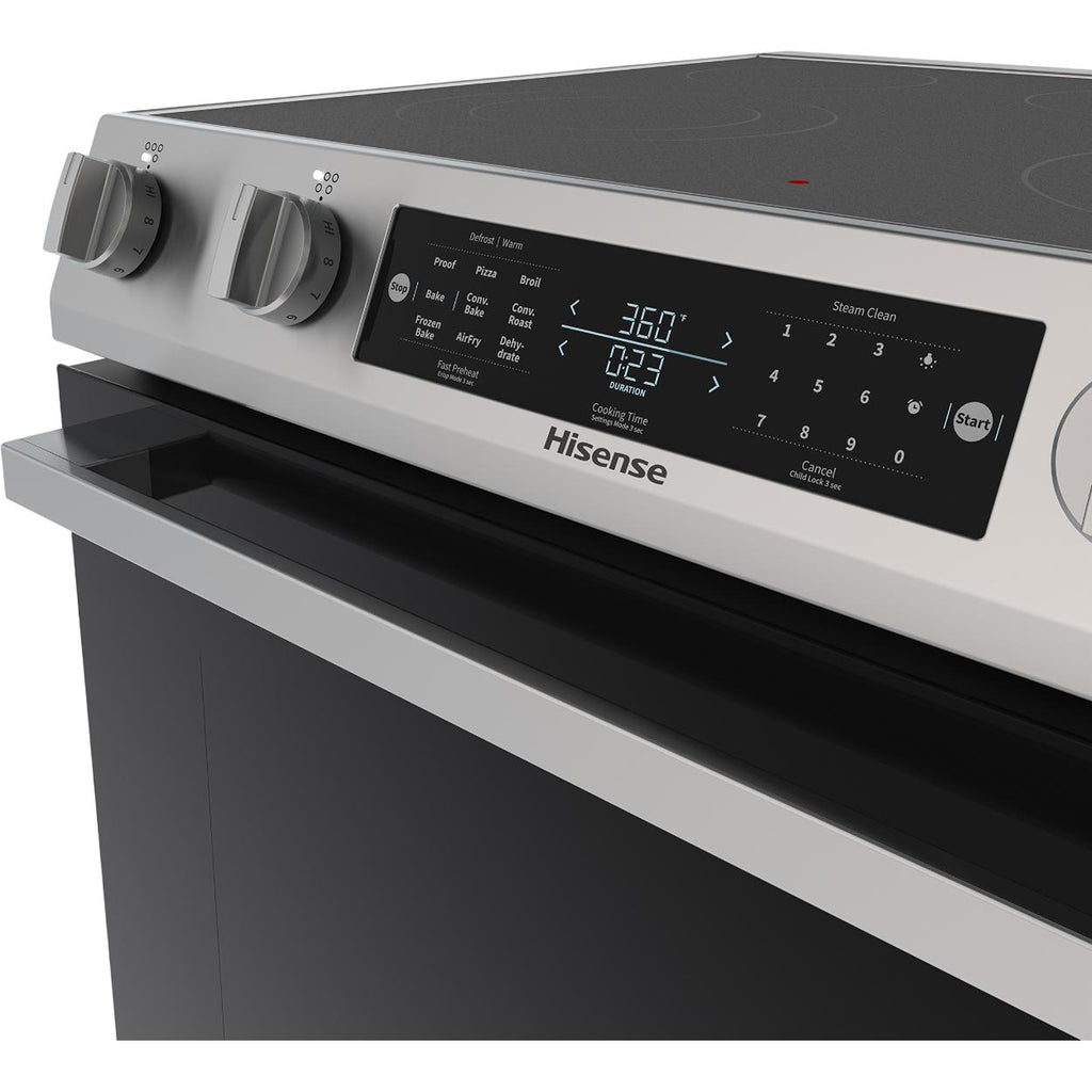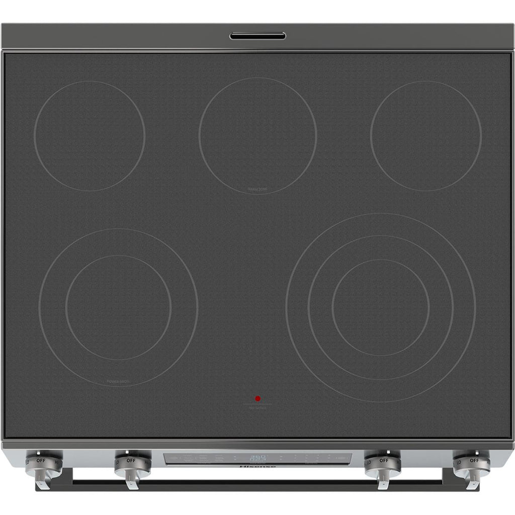 The Hisense electric range is equipped with a triple expandable element and a dual expandable element, ensuring compatibility with a variety of pot sizes. The triple element includes a 6” inner ring, a 9” middle ring, and a 12” outer ring for maximum flexibility. Meanwhile, the dual element features a 6” inner ring and a 9” outer ring, effortlessly adapting to different cookware needs.