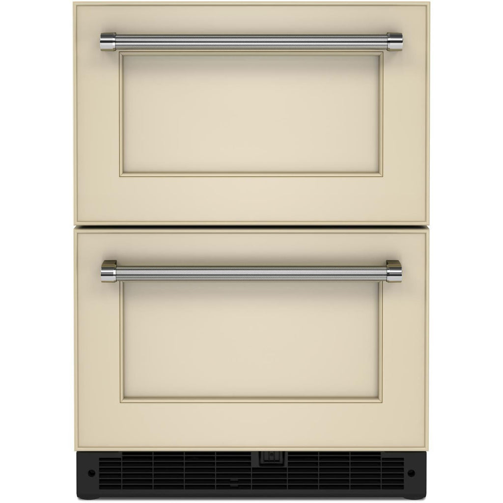 Allows the refrigerator to be customized to match surrounding cabinets with custom panels and handles (not included).