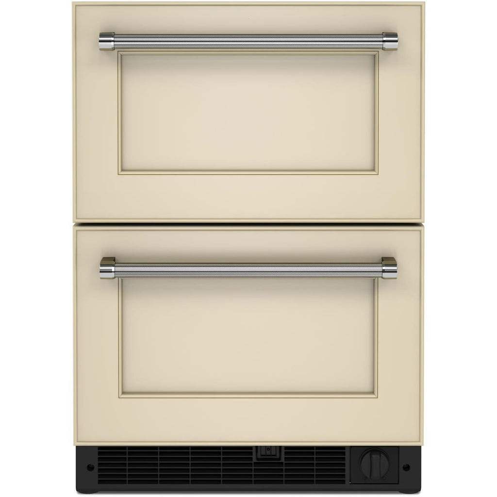 Allows the refrigerator to be customized to match surrounding cabinets with custom panels and handles (not included).