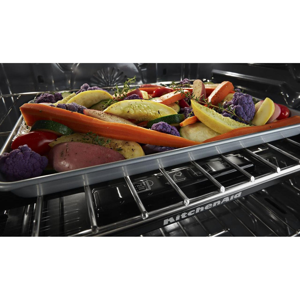 Automatically adjusts conventional baking temperatures to their convection equivalents from the KitchenAid™ app, making it effortless to use convection with recipes of all kinds.