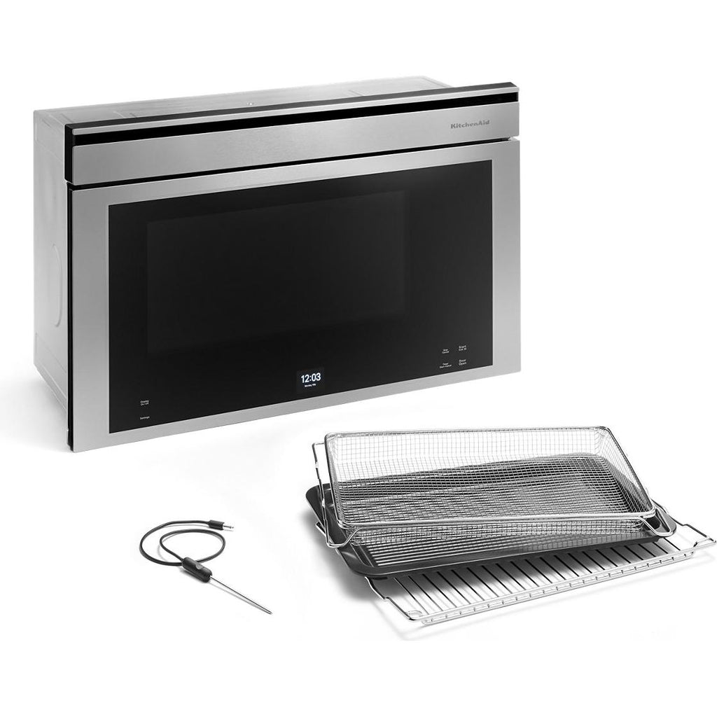 Gives you control over every stage of cooking. Remotely preheat, monitor and control the microwave oven with the KitchenAid™ App or with simple voice commands through your Google Assistant or an Alexa-enabled device, leaving your hands free to create.* *WiFi & App Required. Features subject to change. Details & privacy info at kitchenaid.com/connect (USA) or kitchenaid.ca/connect (Canada). Appliance must be set to Remote Enable. Google® is a trademark of Google LLC. Alexa is a trademark of Amazon.com, Inc. or its affiliates.