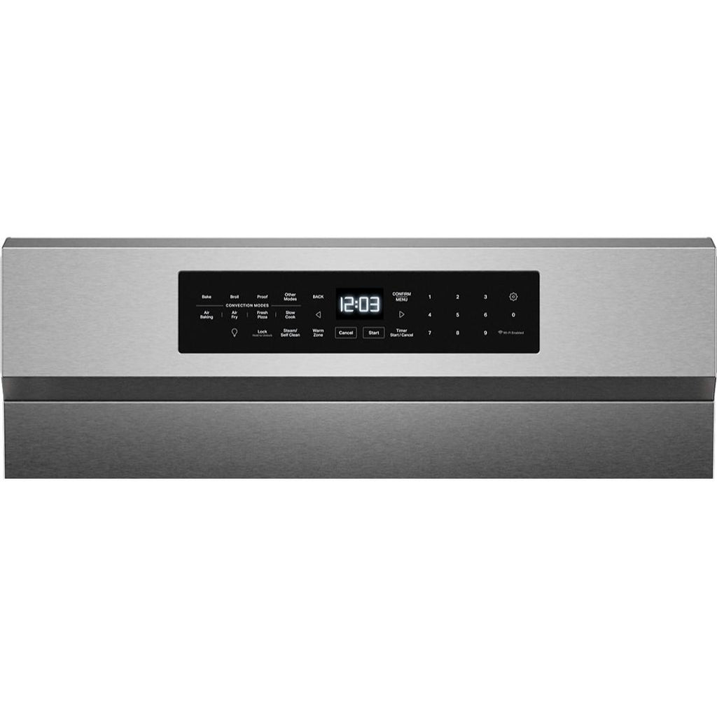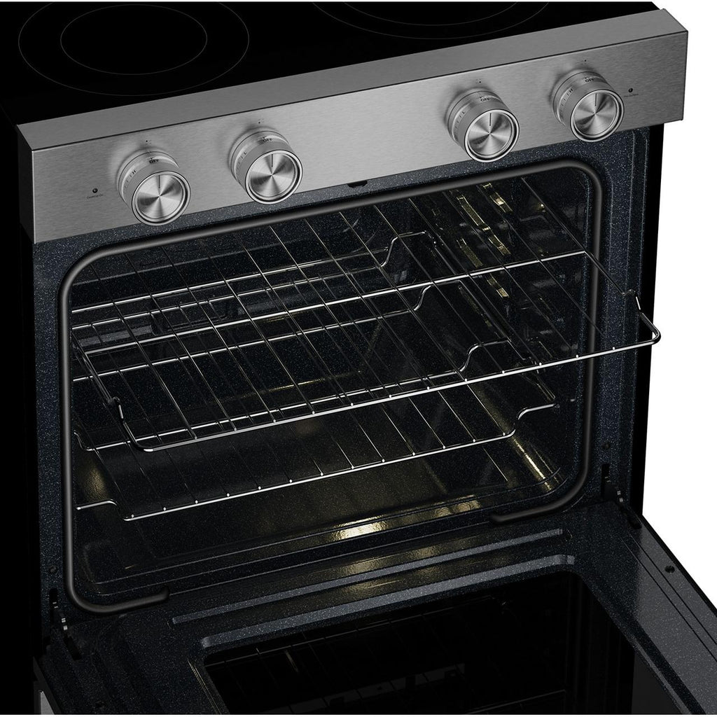 Keep your oven clean with two distinct cycles. The Steam Clean Cycle, perfect for quick, routine maintenance, helps loosen cooked-on food in under an hour. Simply add water to the bottom of the oven and wipe down after the cycle. For a deeper clean, the high-temperature Self-Clean Cycle powers through baked-on spills, leaving the oven cavity clean with just a final wipe-down.