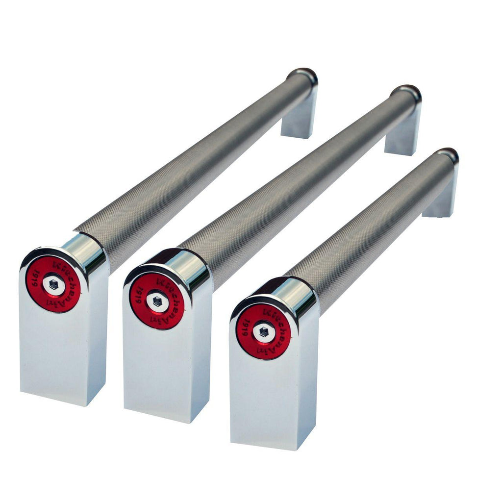 The French Door Refrigerator Handle Kit allows you to create a sleek, modern look for your bottom-mount refrigerator and contains... The French Door Refrigerator Handle Kit allows you to create a sleek, modern look for your bottom-mount refrigerator and contains (2) refrigerator door handles, (1) freezer drawer handle and all hardware required for installation. The stainless-steel handles feature a satin cross-hatch texture with red medallion end caps. This is an accessory that can be used across several brands; check to see if your model number is compatible. Installation of this kit will require basic hand tools, but no disassembly or repair experience. View more