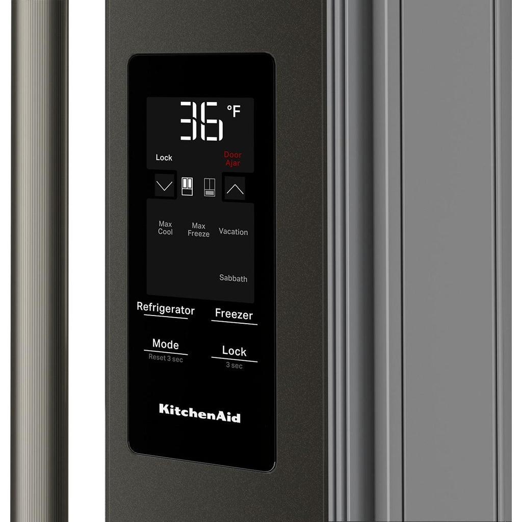 On door exterior put refrigerator functions at your fingertips for quick and easy adjustments to temperature, ice maker, and water filter. Smooth, seamless design is easy to clean.