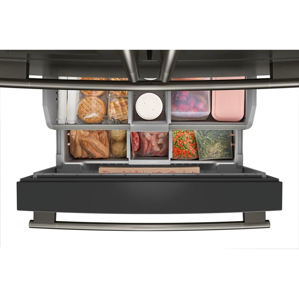 • Freezer Drawer Basket: 2 Full Width Plastic; 2 Small Storage Bin Dividers