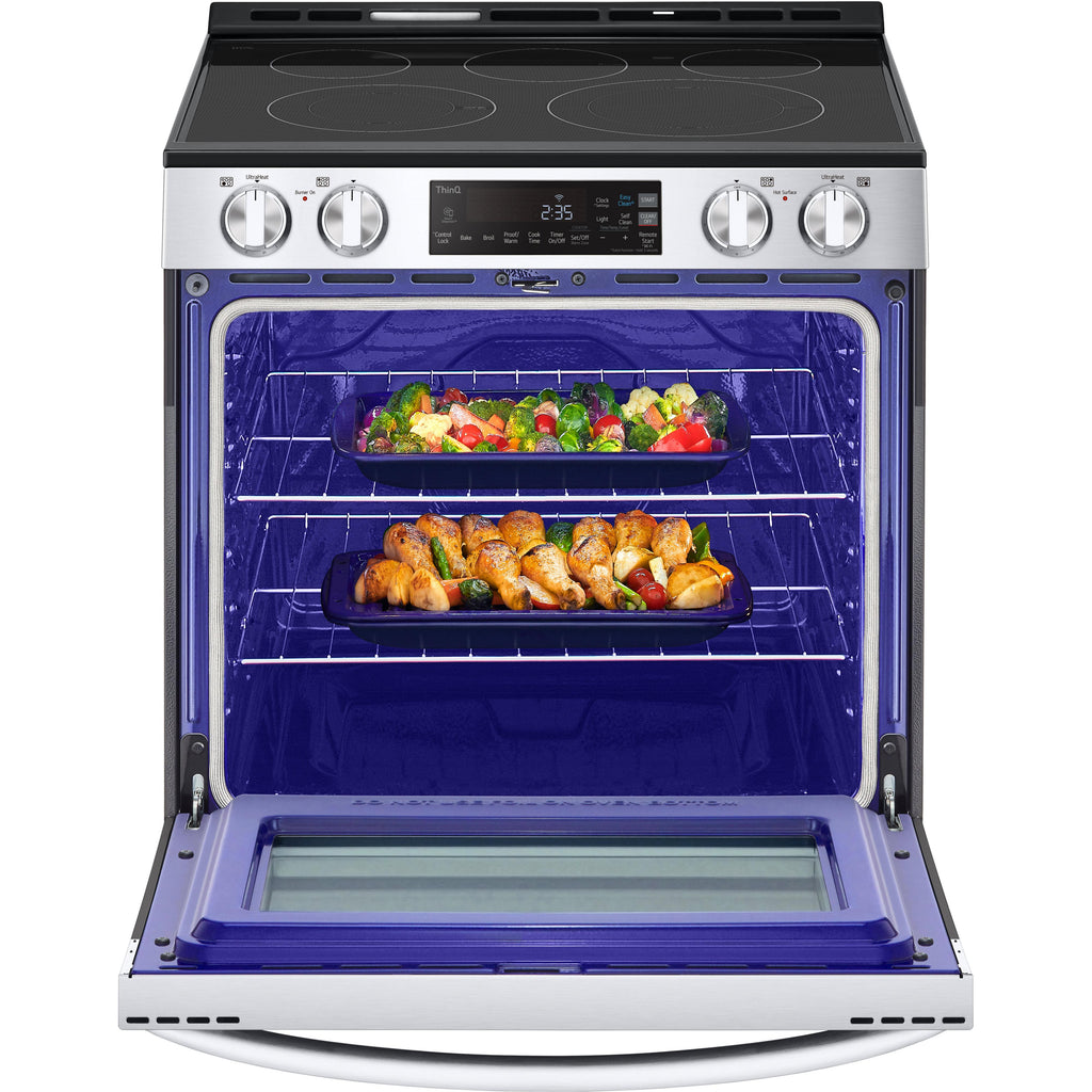 With the LG SmartThinQ® app, you can control your smart oven from anywhere so you don’t have to get up to check how much time is remaining. You can also start preheating and turn the oven on or off from your smartphone, or with voice commands—it even works with the Google Assistant.