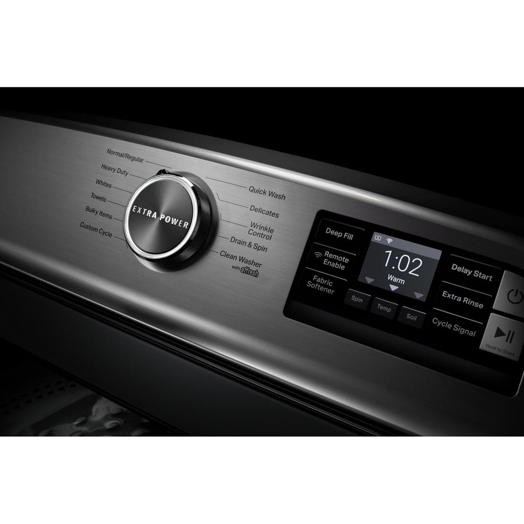 Get the heavy duty washing machine that delivers powerful cleaning you can depend on with the Power™ agitator. The Extra... Get the heavy duty washing machine that delivers powerful cleaning you can depend on with the Power™ agitator. The Extra Power button boosts stain fighting on any wash cycle with a dual-temperature wash, including the Quick Wash cycle. The Deep Fill option delivers more water when you want it with your choice of deeper water levels, *(Bulky items cycle only available with deepest water level) while the built-in water faucet delivers a quick rinse or a long soak. Plus, smart washer features help you stay in control and efficiently manage laundry from anywhere.**(Appliance must be set to remote enable. WiFi & App required. Features subject to change. Details & privacy info at maytag.com/connect.Use the Maytag™) app to remotely start or stop your appliance, get end of cycle notifications and troubleshoot select issues. View more