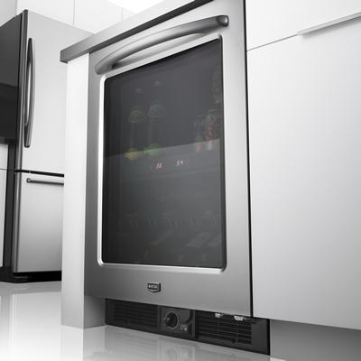 LED temperature display with dimmer; 2 removable, tempered-glass shelves; UV-protected thermal glass door; Exterior temperature control on base grille; Stainless steel exterior and handle; High-efficiency compressor; Heavy duty hinges