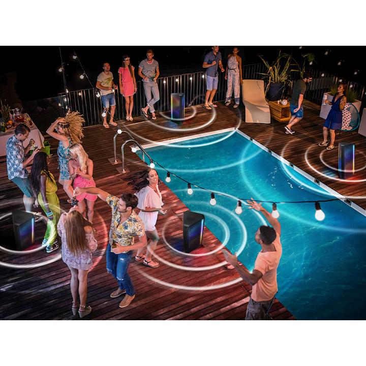 Rated at IPX5, Samsung Sound Towers are primed for outdoor enjoyment.