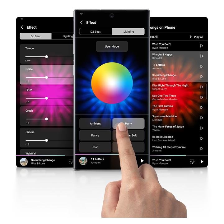 Samsung Sound Towers offers a variety of fun light modes, including Party, Ambient, Dance, Thunder Bolt, and Star,—and it’s easy to adjust the effects using the dedicated app on your mobile device. Set the lighting effect to match the rhythm and get dancing!