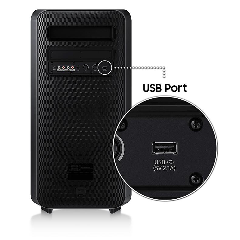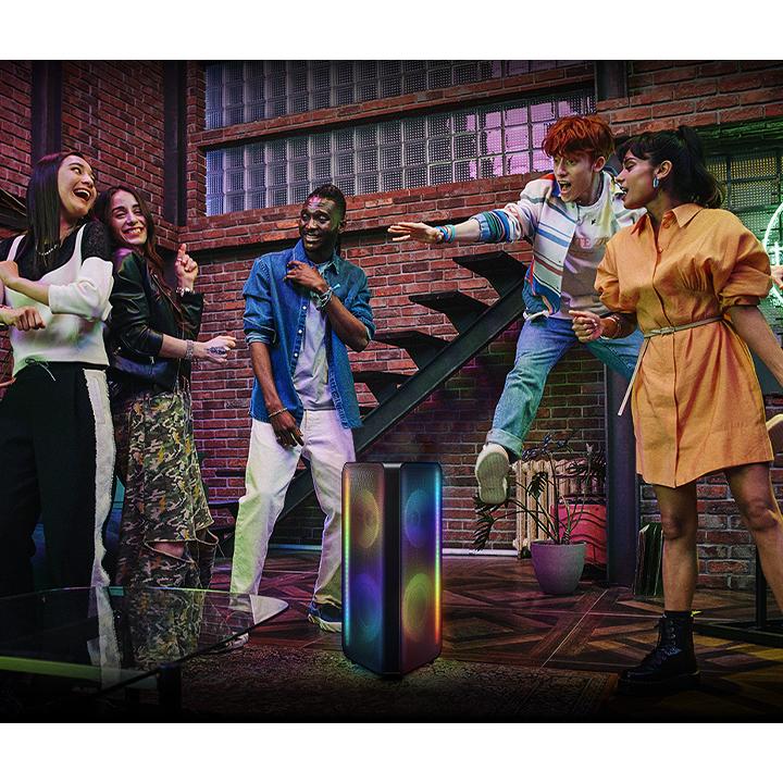 Group Play gets your party thumping. Connect multiple Samsung Sound Tower devices for a richer sound experience—wired or wirelessly.