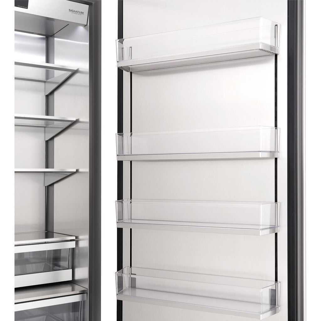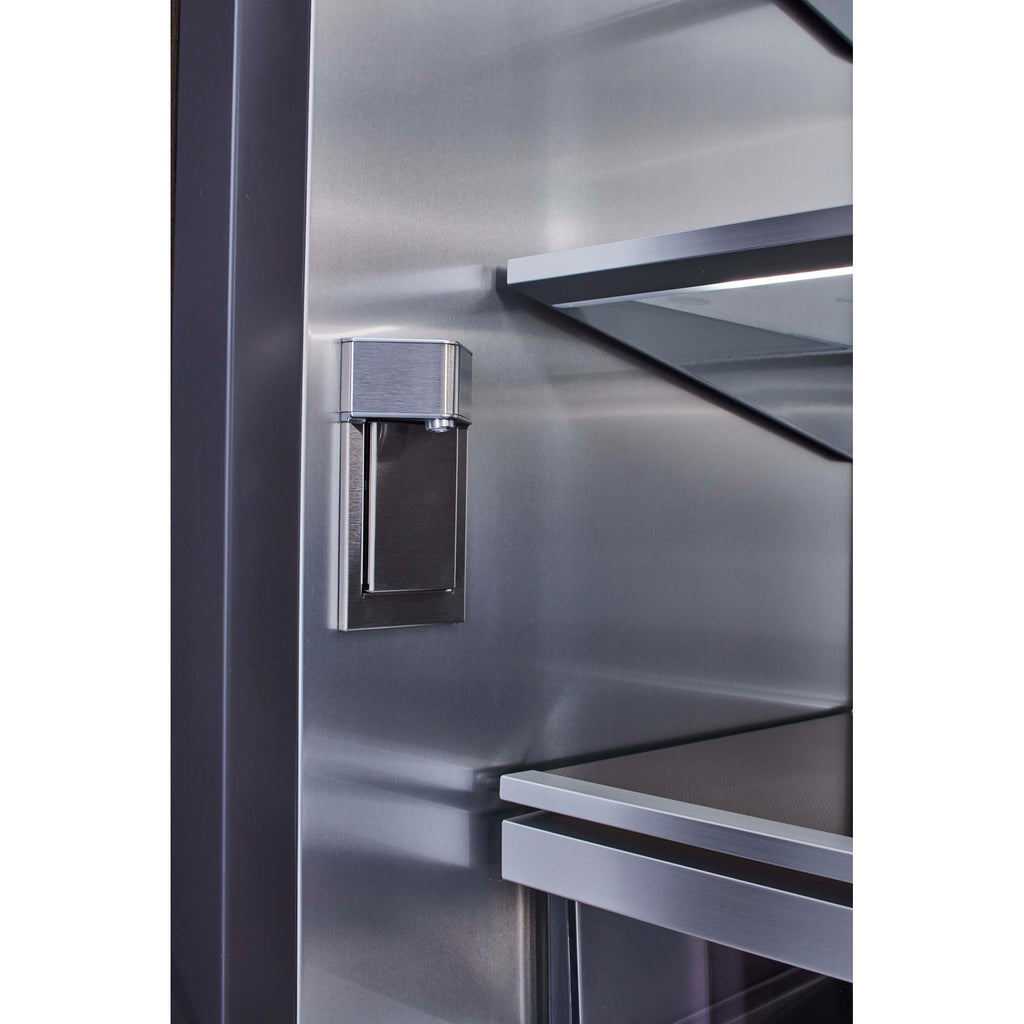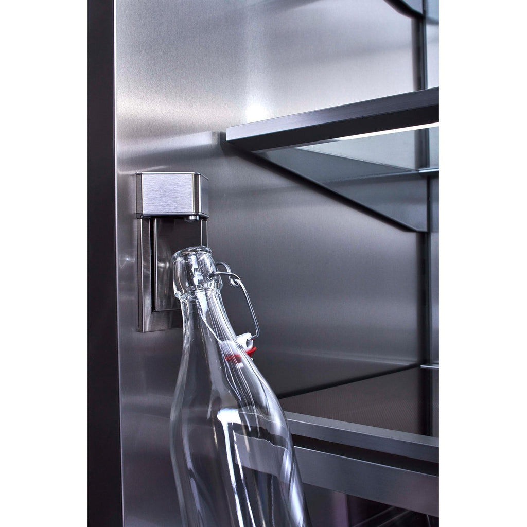 The internal water dispenser delivers chilled and filtered drinking water with a simple touch. The dispenser is conveniently tucked inside to not interfere with your clean exterior design of the door.