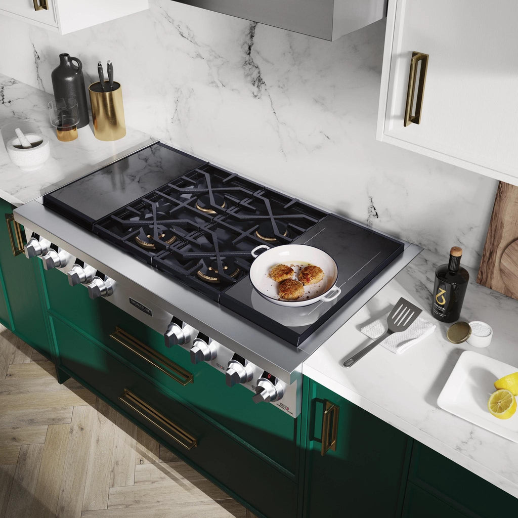 Two Ultra-High™ Burners deliver 23K BTUs of pure cooking power for better searing and quick stir-frying. Two Ultra-Low™ Burners simmer down to maintain temperatures as low as 100° to prepare delicate sauces and sugary confections.