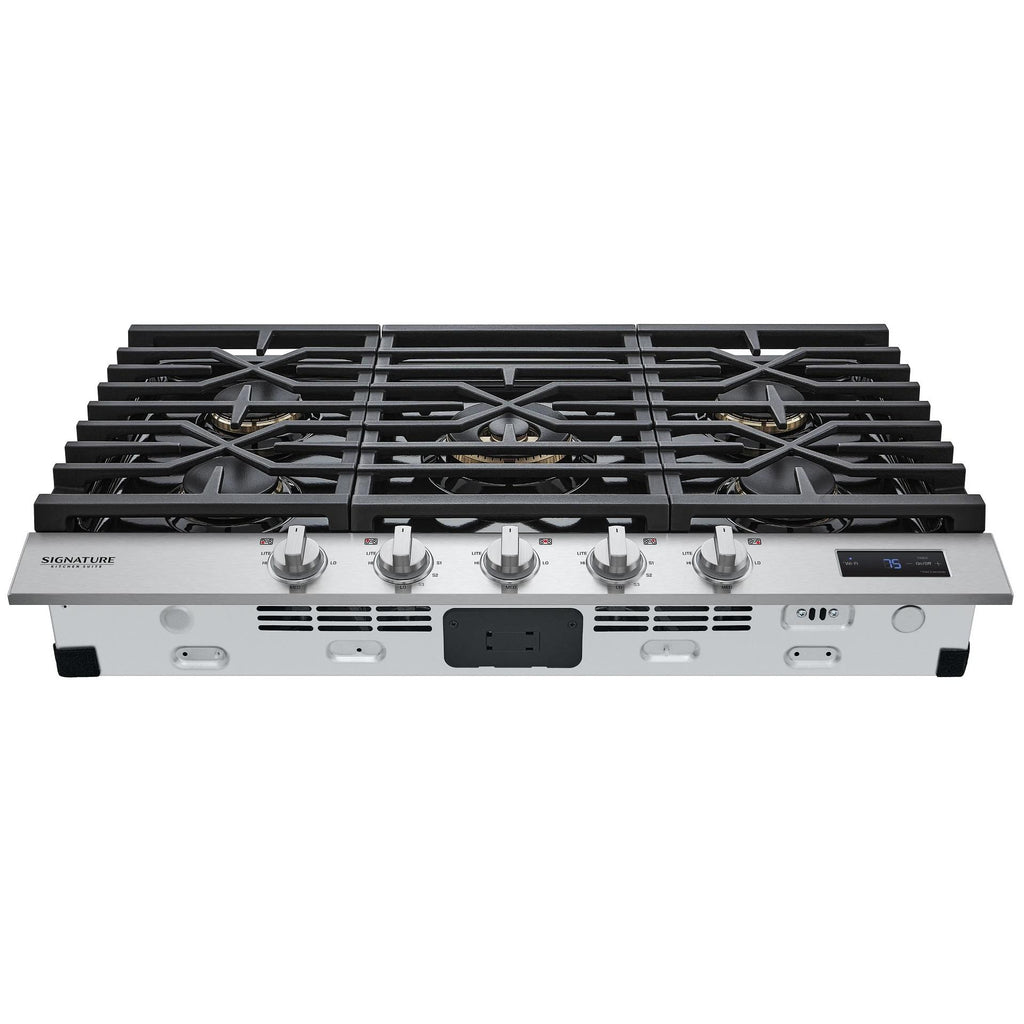 • Simmer Burner Power BTU/h (NG): Left Rear: 1,300; Right Rear: 1,300: Center (warming zone): 650; Left Front: 1,300; Right Front: 1,300