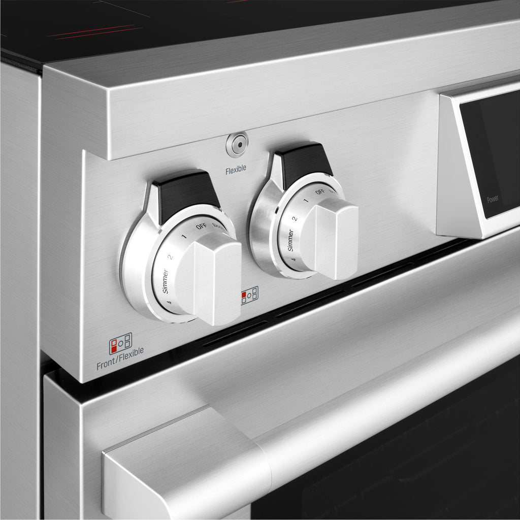 Each burner has a dedicated Smart Knob™ featuring a large, illuminated display that makes it easy to read from across the room. Smart Knobs™ include a Wi-Fi function that let you see if the element is on or off using the ThinQ® app.