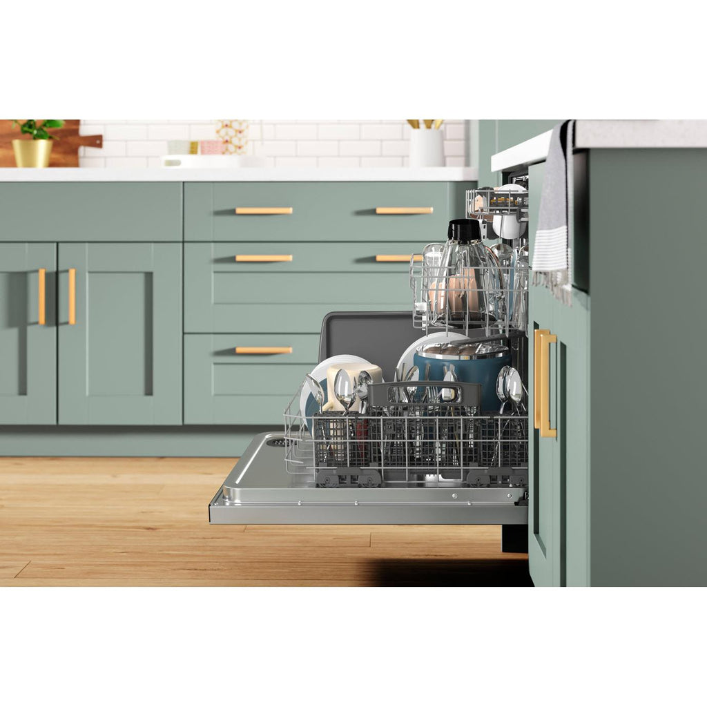 The full lit display glows for wash, drain, drying, sanitized and clean along with the time in hours and minutes so there’s no need to guess when your dishes will be ready.