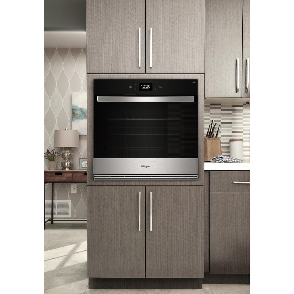 Cook however you want with 8 cooking modes in one wall oven: Air Fry, Frozen Bake™, Keep Warm, Broil, Convect Broil, Bake, Convect Bake and Convect Roast. For even more cycles and enhanced performance over time, connect your appliance to receive Automatic Feature Updates*. *Appliance must be connected. Wifi & App Required. Features subject to change. Details and privacy info at whirlpool.com/connect.