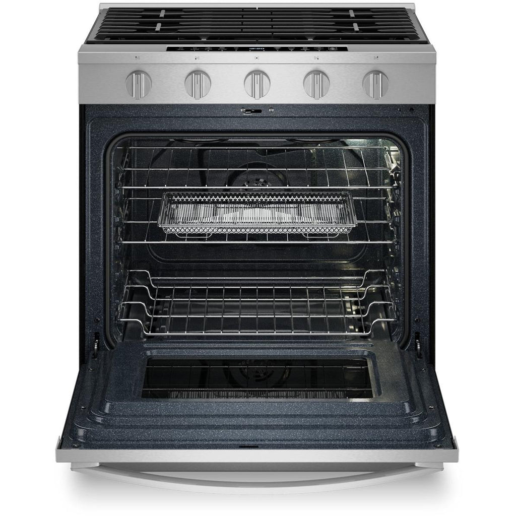 Skip preheating and air fry chicken nuggets, wings, fries and more to get crispy results right in your oven. The Air Fry Mode circulates hot air around the air fry basket to cook fried food in a healthy way with less oil than traditional frying.
